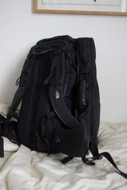 La bolsa y el caso. La caja y la bolsa tienen la misma altura exacta que crea una sensación de complementarios. Tenga en cuenta el equilibrio de peso con una cantina (la cantina suspenderá mismo peso ya que mi principal fuente de agua es un depósito de 2L en el paquete).