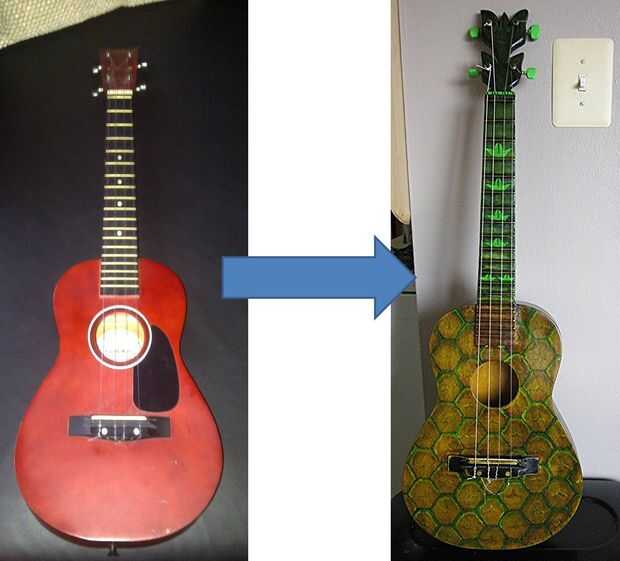 Cuando primero empiezo un proyecto como este intento de evitar la tentación para fregar el internet para ver lo que otros han hecho con un concepto similar. No soy muy buena en resistencia de la tentación, y después de una breve búsqueda encontré varias tomas diferentes en ukeleles mirando como piñas, incluso hay un tipo de ukelele llamado un "ukelele piña", basado en su forma, no necesariamente su trabajo de pintura exterior.