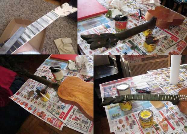 Inspirado por una combinación de eplunkett'sPlayable ukelele de cartón, que luego inspiró a parrster'sMake un ukelele de cartón, construí esto, yo lo llamo el ukelele de cartón de George Harrison "firma modelo", con un método más auténtico de la