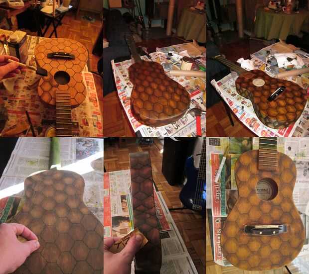 A continuación, tomó un tinte oscuro y había delineado cada panal, dejando una sección en medio de cada uno con la mancha de luz anterior. Después de esta mancha seca, yo una vez más lijarlo.