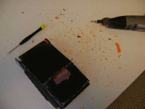 Tomamos la parte superior de la caja de la munición fuera y utilizado para el contador de la casa. Dremel al lugar para el contador LED hacia fuera. Dremeled parte de la cadena de agarre para montar el interruptor del rodillo. De esta manera que los enlaces golpear el interruptor cada vez que la banda avanzada. Los conductores de que el interruptor ir al mostrador a través de los agujeros Dremeled en la parte superior de la guía de cadena.