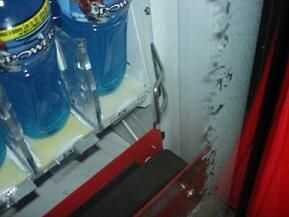 Pop se atascan. Dependiendo de qué tipo de botella aparece de vez en cuando se atascan entre la cinta transportadora y una barra de metal.