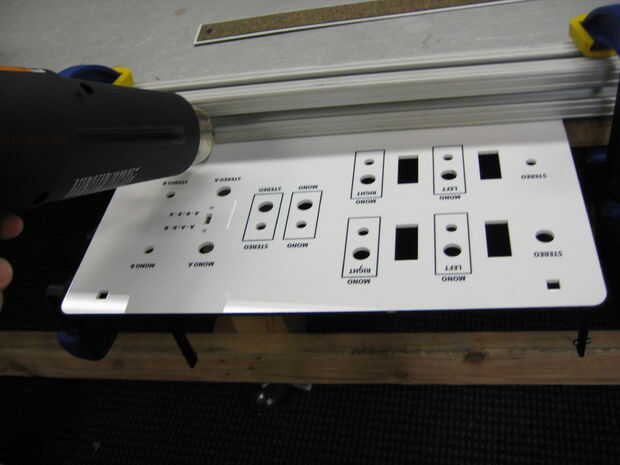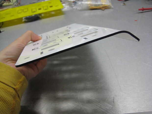 Ponga en sus guantes de trabajo. Caliente a través de la articulación (donde se sujeta la Junta) hasta que comience a visiblemente empieza a decaer un poco. Sujete la parte del acrílico más alejado del borde caliente (la parte más fresca) y uniformemente y suavemente comienza a agacharse todo el panel. Continuar hasta que el panel esta en alrededor de 45 a 60 grados de flexión.
