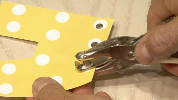 3. con la perforadora, perfore un agujero en el centro de cada uno de los pequeños puntos.