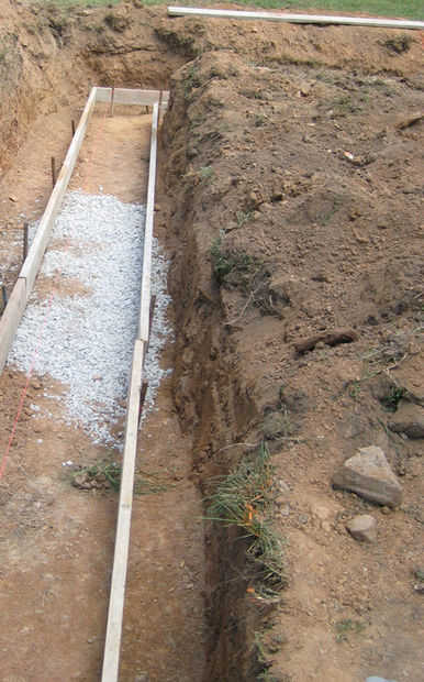 Los marcos de pie de página se configura con 2 "x 6", 2 "x 10" y capas de masonite para la curva. Barras de refuerzo fue presentado y atado junto con la pistola de barras de refuerzo. La varilla se colocó encima de sillas de la barra de refuerzo (bloques de refuerzo podrían ser utilizados así) para mantener las barras en el centro de la almohadilla del hormigón durante el vertido.