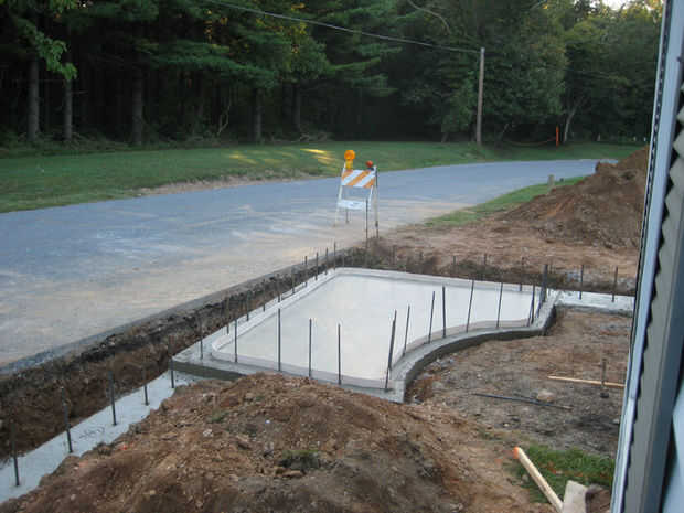 Después de la pour la Junta de goma fue insertada en la losa de hormigón. Como se mencionó antes Esto evitará cualquier fuga que se produzca en las paredes reunirán la losa. Se puede ver la mitad de la Junta de goma es que sobresalen de la losa de hormigón. La mitad que es visible en la foto de abajo se encajonan en la pared durante el próximo vertido.