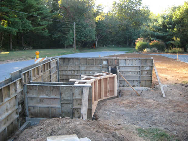Luego de estas madera forma donde atornillado en la losa de hormigón (esta curva madera sería el área más débil durante el vertido del hormigón, lo que es más probabilidad de tener un golpe, para precauciones adicionales son necesarias para que sea estable). 2 "x 4" refuerzo se coloca encima de la pared que conecta los dos lados del formulario. Este refuerzo fue clavado hacia abajo en el 2 "x 4" de los postes de madera para que sea una unidad estructural.