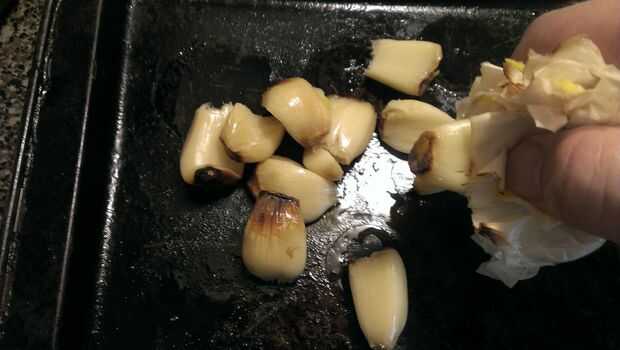 Cuando vegetales tienen un buen carácter en la parte superior y se han suavizado puede sacar del horno. Debe buscar sobre cómo he mostrado. Con el ajo asado, la bombilla habrá ablandado bastante que usted simplemente puede exprimir el bulbo y saltará derecha.