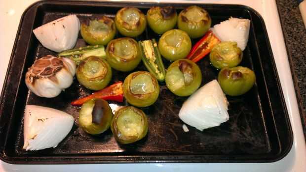 aquí es una rápida n Salsa Verde receta fácil.Paso 1: Lo que se necesita 1 libra de Tomatillos1 cebolla pequeña3 jalapeños3 dientes de ajo1 manojo de CilantroJugo de 1 limónAceite de olivaPimienta negraSalPaso 2: Em de asado Precalienta el horno a as