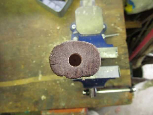 -Perfore un orificio de aproximadamente 1/4" de más corto que la sección de la broca titular mantener usando un Taladro broca del mismo diámetro que el sostenedor del pedacito. El agujero debe ser aproximadamente 1/2" de profundidad. Asegúrese de que el agujero está en el centro de la parte inferior de la empuñadura.