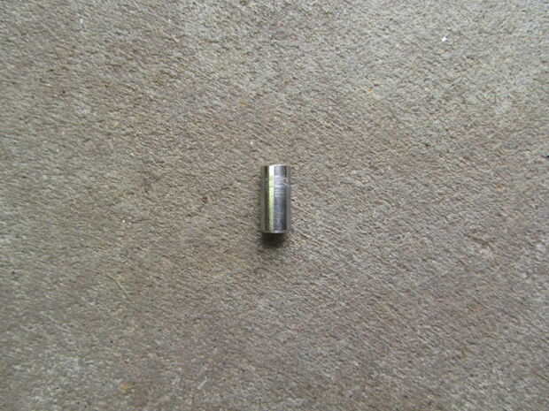 -Portapuntas magnético es básicamente un tubo con un imán cerca de 1/2" abajo del tubo en un extremo y la punta que introduzca en el taladro en el otro. Use la sierra para hacer un corte de 1/4" el imán entre el imán y la broca. Mantenga la sección con el imán.