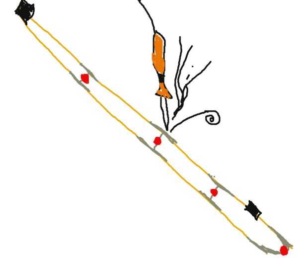 Empezar por un LED en el extremo del alambre de soldadura. Marque el alambre que soldar el plomo negativo para con un trozo de cinta aislante negra. Luego, soldar todos los LEDs en las otras ranuras que rayas, soldar los cables negativo al cable negativo recién marcado y los cables de positivo al otro cable como se muestra en la foto de arriba.