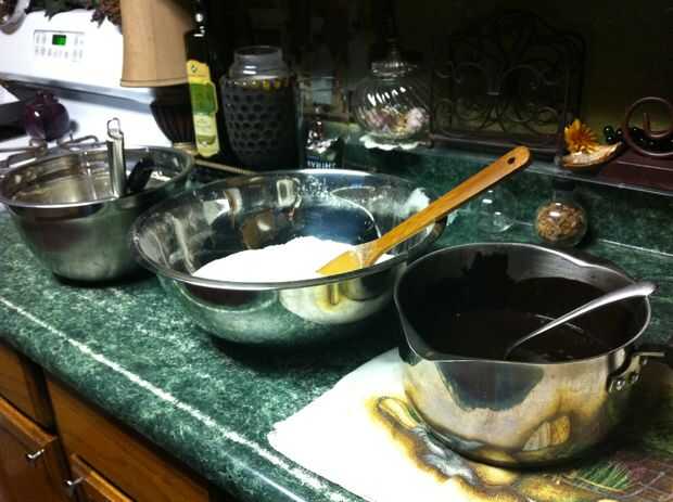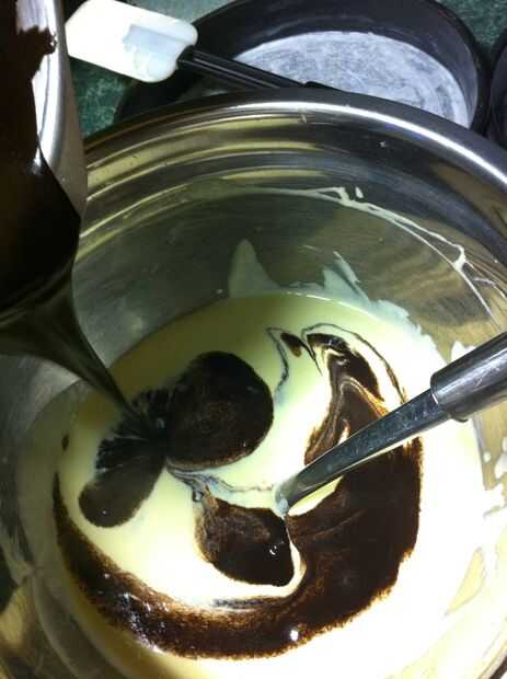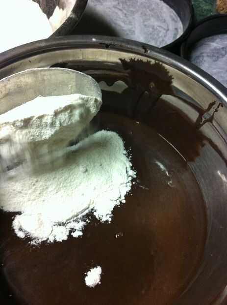 Añadir la mezcla de huevo /sour cream a la cerveza, la mantequilla y la mezcla de cacao. Mezcle bien.