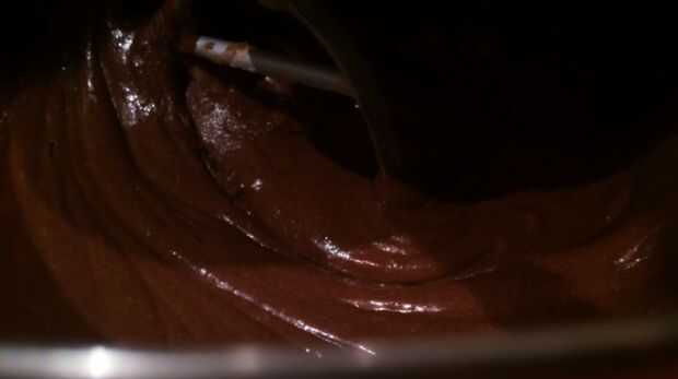 Mezclar los ingredientes secos en un bol o batidora. Batir los huevos, leche, aceite y vainilla y vierta en la mezcla. Termine agregando en el agua hirviendo y mezclar en un medio a alta velocidad durante 1 minuto para incorporar aire a la masa.