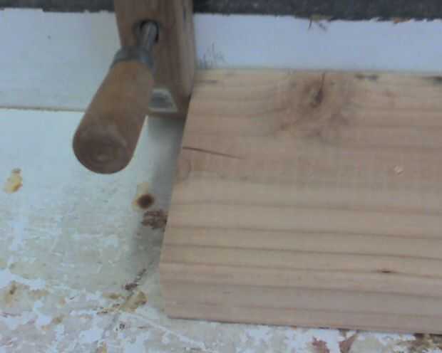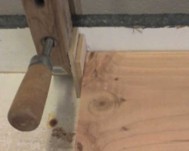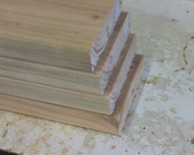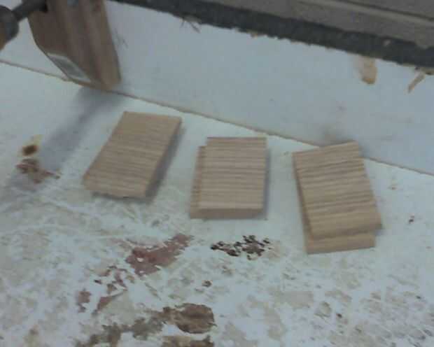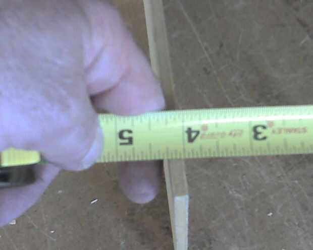 Vas a establecer tu parada cerca a 36-1/2 pulgadas y hacer el primer corte. Luego añadir una mitad pulgada de cuña contra el tope y el segundo corte. Añadir la otra mitad de cuña para la tercera y el último media pulgadas de cuña para el cuarto corte superior. Asegúrese de que no hay polvo de la sierra recoge entre las cuñas para los cortes más precisos.