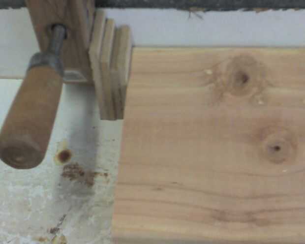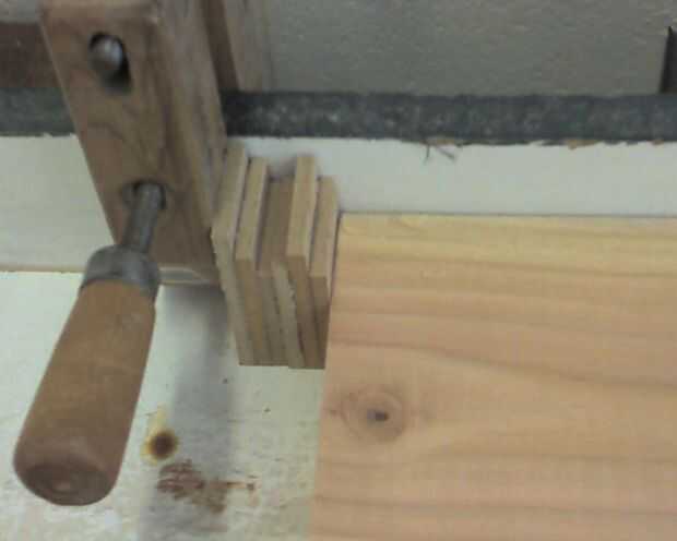 Necesita tres pequeños pedazos de la acción de cuña de media pulgada para separadores. deben ser alrededor de 1-1/2 pulgadas x 2-1/2 pulgadas (o algo cercano). No tengo madera contrachapada de media pulgada, usé seis piezas de contrachapado de pulgadas de trimestre. La madera contrachapada pulgadas de trimestre también vino útil más adelante.