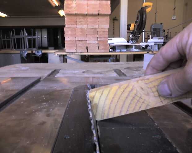Las ventajas de hacerlo así son: es mucho más rápido y no involucra tirando de trabajo fuera del corte sierra o hundiendo hacia abajo sobre la cuchilla y corriendo a una parada.