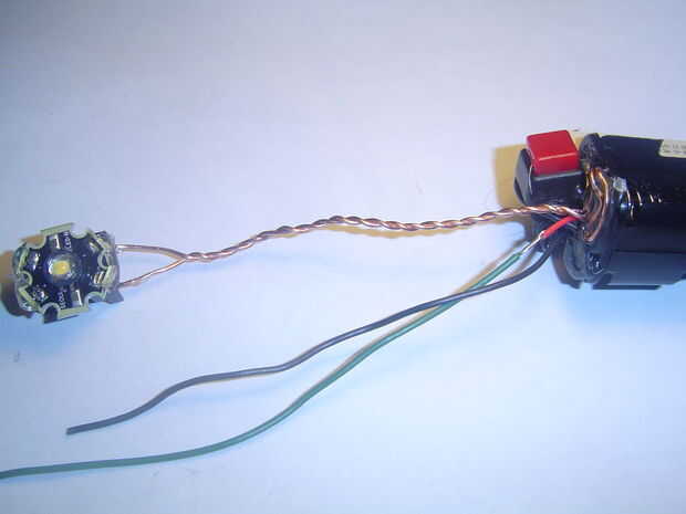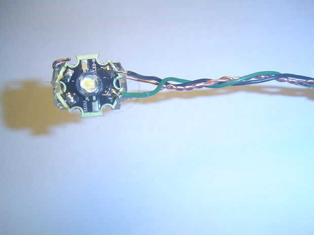 Por último, envolver los dos cables del LED alrededor del tallo de LED y soldarlos a sus terminales correspondientes.