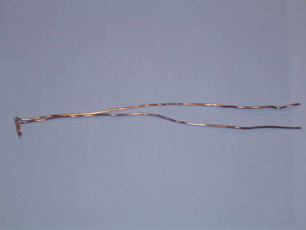 Cortar un trozo del alambre grueso por lo menos 30 cm largo (si es demasiado larga que se puede cortar más adelante). Dóblelo a la mitad donde está el centro y doblar hacia atrás a lo largo de sí mismo. Doblar la parte donde se dobla en forma serpenteante que se forma un área plana. Esto se pega sobre una superficie plana.