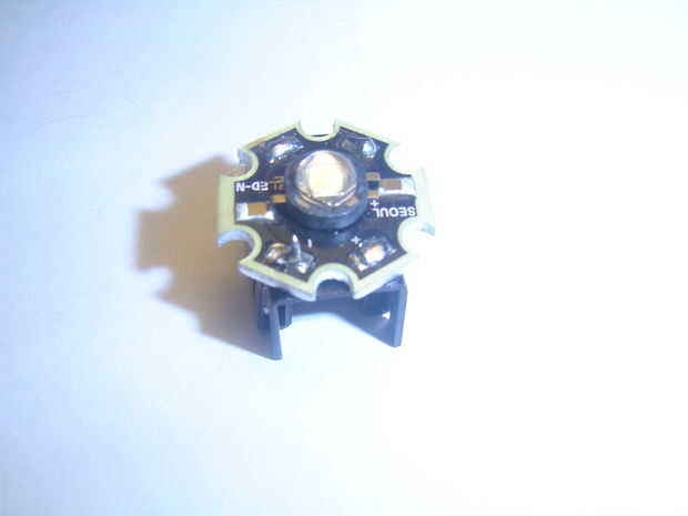 Encontrar el LED y el disipador de calor pequeño. Aplicar una muy pequeña cantidad de grasa del disipador de calor para el disipador de calor y presione el LED en la parte superior.