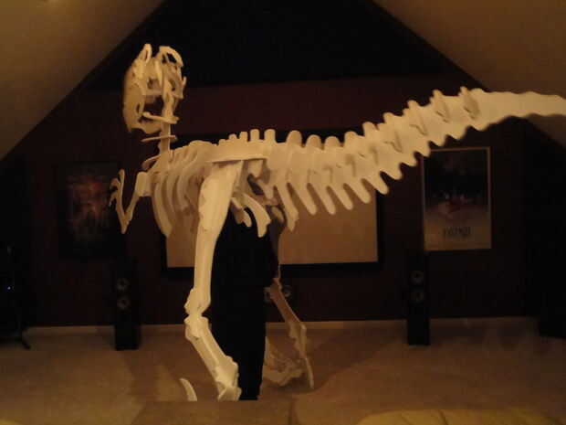 este Instructable documenta la construcción del traje del dinosaurio de Jamie Price. ¡ Es más de 10 pies de altura y 14 pies de largo! Hay más de 140 piezas individuales que fueron creadas. Se construye de una espuma flexible con una subestructura de soporte de acero soldada con autógena de aluminio. La mayoría de las partes fueron cortada con un router CNC de corte unos a mano utilizando un dremel y un router normal. Tiempo de construcción total era alrededor de 130 horas a un costo de tiempo de máquina materiales de $550.