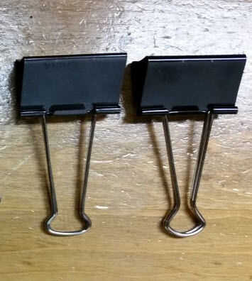 Empieza por tomar las manijas de los clips de la dos carpeta. Sólo apriete de ambos lados y tire hacia afuera.