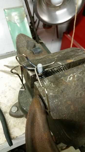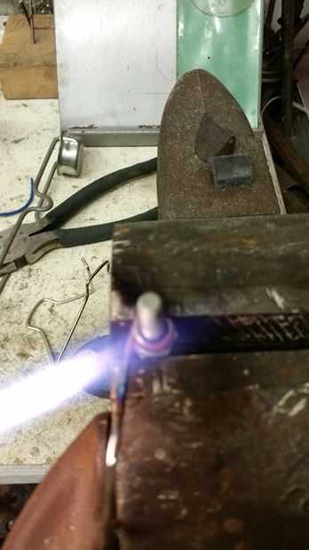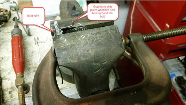 3. ahora su antorcha y pinza y el mango del calor y extremo del gancho agarrador y rap alrededor del perno. Nota: no rap tan apretado que no mueva necesita moverse. (Ver fotos arriba)