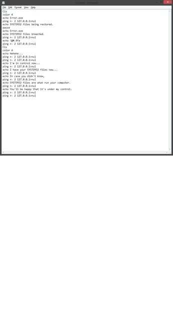 Aquí es donde de alguna manera el SYSTEM32 archivos por arte de magia comienzan restauración. Entonces, un "hacker" comienza a hablar. Copie y pegue a continuación codificación paso cinco.