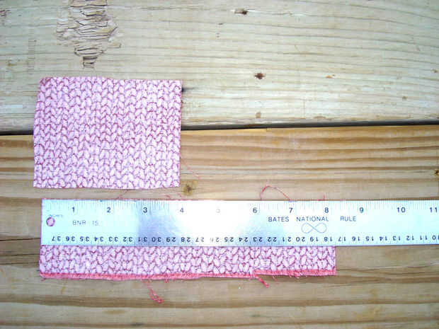 Cortar 1 tela contrastante (4" largo X 2 1/4" de ancho) corte entretela (1) el mismo.