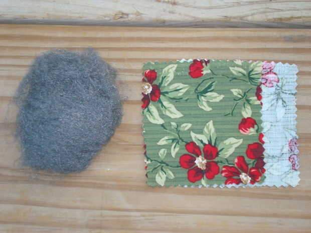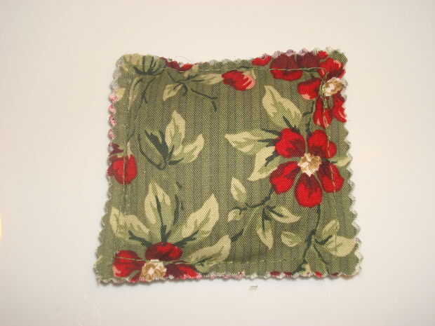 Coloque el (2) paños de tela cuadrado mide 3 1/2" con lados mal juntos.