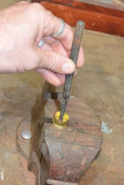 1. con un punzón o algo redondo con un extremo plano, martillo cuidadosamente hacia fuera de la cartilla. Asegúrese de que la cartilla es martillada hacia fuera desde el interior de la tapa. No funciona la otra manera.