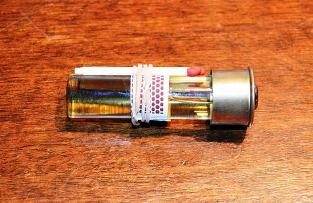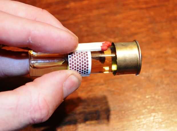 4. los partidos y el delantero en el frasco y empuje con cuidado la cáscara de la escopeta... Es un ajuste apretado, pero se asegurará de que la tapa permanece en su lugar.