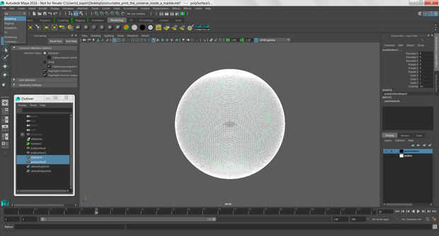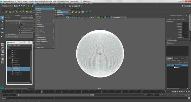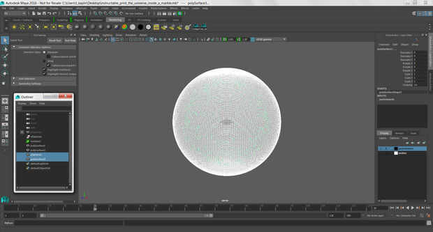 Ahora, seleccione la esfera y el duplicado de la nube de partículas. Asegúrese de que usted seleccione primero la esfera, esta orden de operaciones es fundamental para obtener el resultado que desea. Si usted tiene problemas para seleccionar las geometrías en el orden correcto, recuerde usar la ventana Outliner .