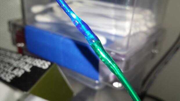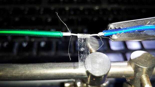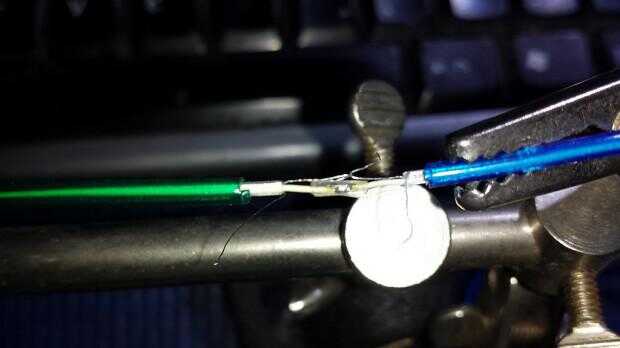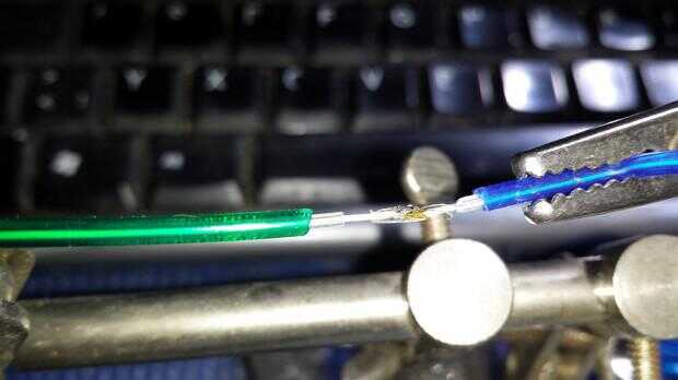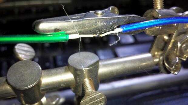 Aquí está la foto de los cables se unieron una vez más, uno en azul, el otro en verde: