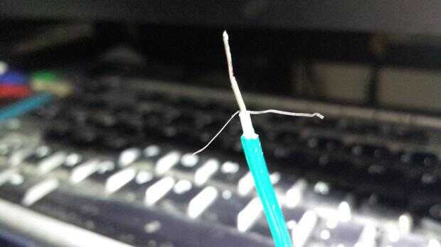 Raspar EL material de corte withoug a través del cable interno - no te preocupes demasiado que es un alambre sólido.