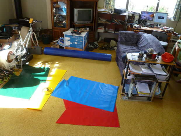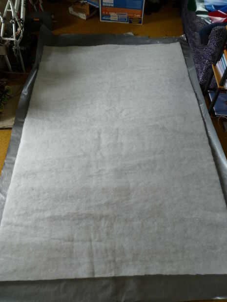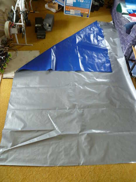 En lugar de comprar una nueva lona para este proyecto y en lugar de utilizar un viejo desagradable que ya tenía, hizo una visita al fabricante local carpa/lona. Me dio 2,4 M (8 pies) de material ancho de 1,8 M (6 pies) por sólo $15 y también lanzó en los desechos de los que he usado para las manchas.