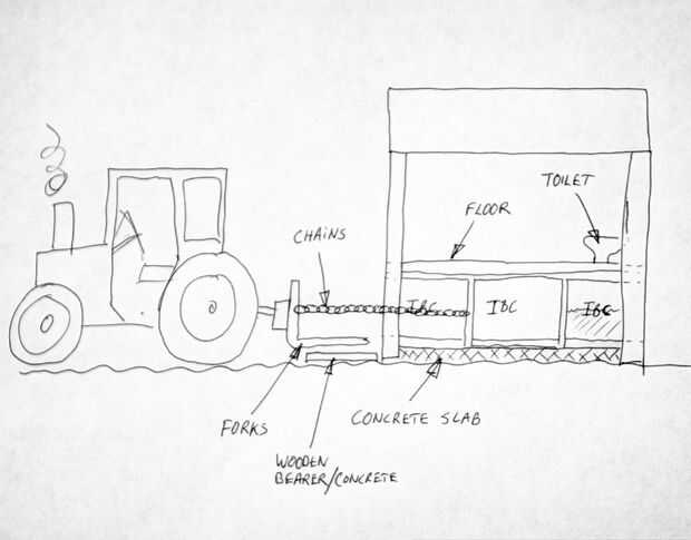 Usted puede pensar que este diseño es un poco arriesgado, ser dependiente en un deslizamiento completo de IBC deslizamiento a lo largo de una losa de concreto, pero, en una vida anterior trabajé en lugares donde Rig completo era realmente deliberadamente empujados por pisos resbalosos, aceitosos, concreto por carretillas elevadoras - por lo que sé para un hecho que se puede hacer.