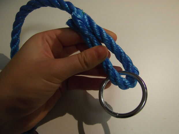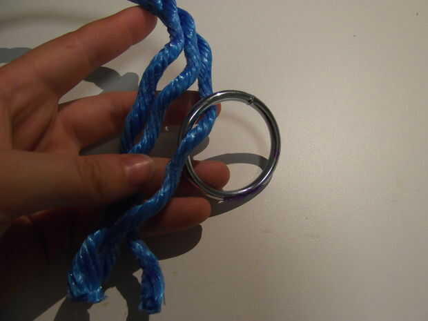 Foto 2: doble 10cm de cada extremo de una cuerda. En el lazo vendrá 1 anillo de metal.