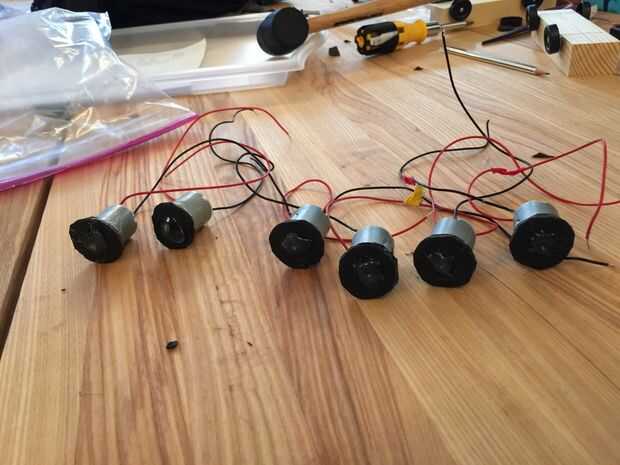 Pegamento caliente los otros círculos de cartón 6 en las ruedas ya pegados. (como una doble capa) Esto asegura que las ruedas puedan soportar el peso del vehículo entero.