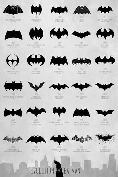 He incluido una evolución del símbolo bat (por la ley de uso justo, por supuesto). Mientras que éste no tiene los diferentes símbolos utilizados en los años, es uno de los mejores. Esto es lo que estará ayudando nos diseño de las aspas del ventilador nuevo,... er... alas, es decir.