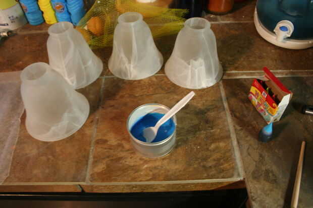 Este es el reto que reconoció al principio de este proyecto - simplemente no puedo tener normales luces mira mi ventilador de bat. Así, algunas investigaciones estaba en orden. Me acordé de ver algún proyecto de teñido tarro de masón en algún lugar, así comenzó a buscar y finalmente se estableció en este caso en