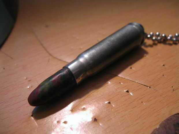 esta cadena de collar clave simple bala podría realmente e hecho en cualquier cosa que usted puede pensar. Cosas: pequeño trozo de acrílico para la bala real sí mismo, una concha de 06.30 (creo que no saben mucho sobre armas de fuego), taladro y de g