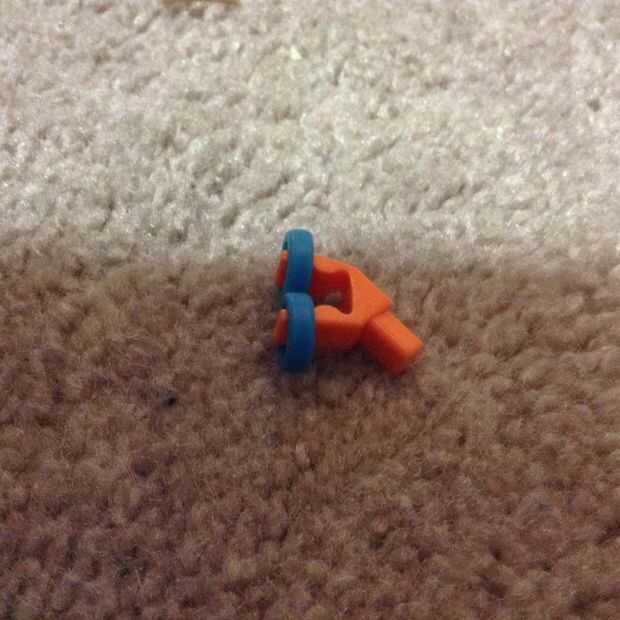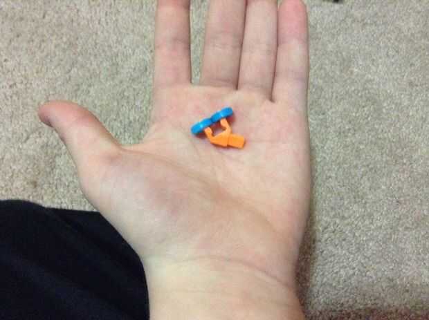 Esta es el verdadera arma de K'nex más pequeño. Y NO UN BLOQUE! ¿Awesome, derecho? No es sólo el más pequeño, pero utiliza menos piezas. 3 piezas para hacerlo. Una cosa naranja (no sé lo que se llaman) y 2 espaciadores azul (uno por disparo, uno para la munición). Usted puede hacer de la foto, es tan fácil. Al fuego tire el anillo de fondo azul. El anillo superior va a tirar. Probablemente podrían caber 25 de ellos en la mano, son tan pequeños. Vamos a llegar a algunos PROS y contras.