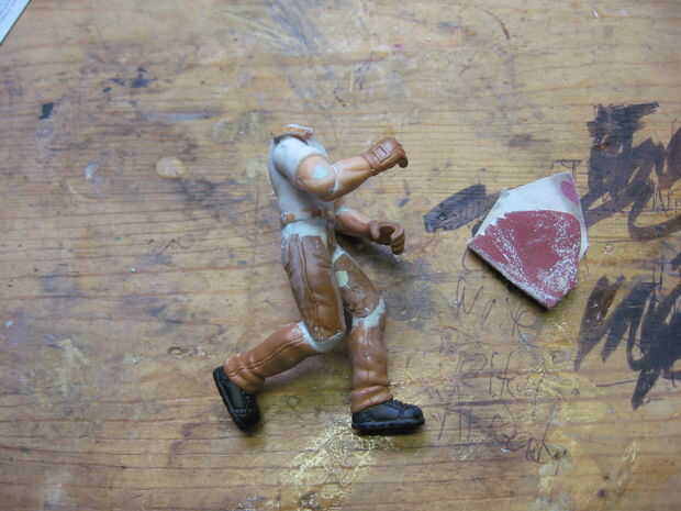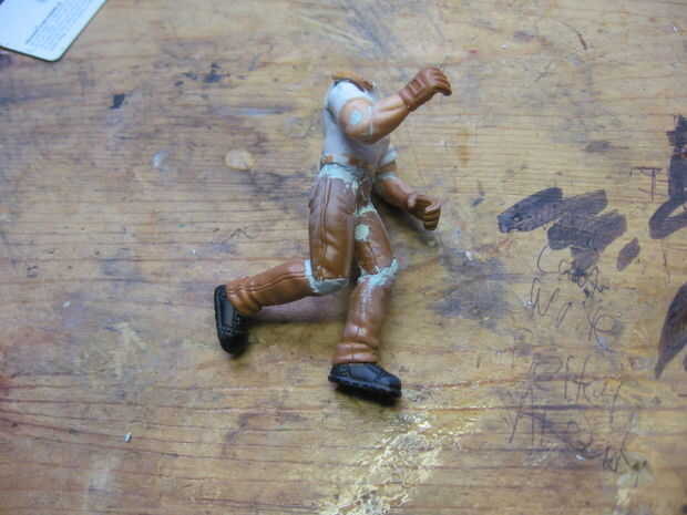 Una vez que el pegamento ha secado tenemos que llenar los vacíos de las articulaciones y puntos de montaje. Rellene los agujeros con masilla de epoxi de dos parte. Espere a que seque y luego la arena. Repita hasta que los huecos rellenos incluso con las superficies de la figura.