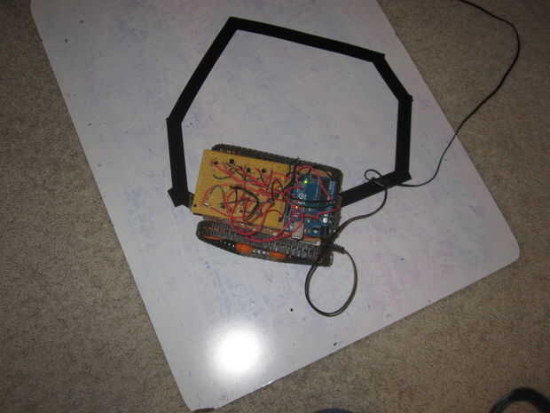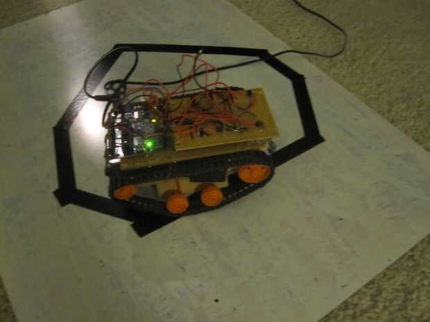 Nota: El robot debido a la naturaleza del código, se se mueven relativamente lentamente a lo largo de la línea, no creo que realmente lo puede hacer ir mucho mejor con un único sensor. El robot se congele cada ahora y entonces mientras se está ejecutando. Cuando esto suceda simplemente desplazar el robot en cualquier dirección, y seguirá funcionando.