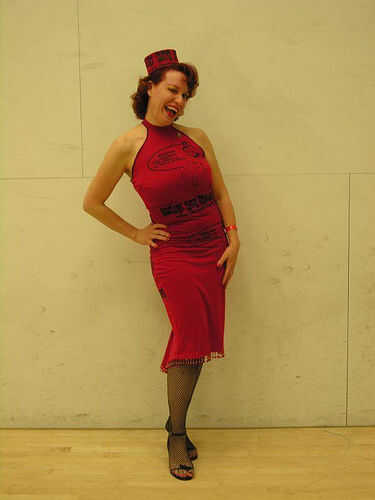 Este proyecto tendrá (al menos) dos personas, uno de los cuales debe ser un seamster conocedor. Tuvimos dos personas grandes costureras, pero entonces, solo teníamos dos horas. Fue una colaboración de las mentes de Ruthie hijas Voss y Thayer Abaigael Lund. Había diseñado y había construido este vestido durante el evento de caridad de LindyHop la vida que estábamos asistiendo, una 24 horas Dance-a-thon, con nuestro grupo, el culto del ojo.