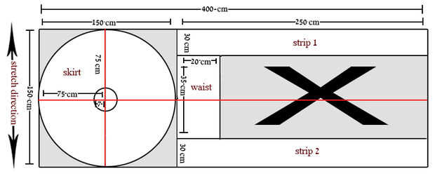La tela debe ser de 4m de largo y 1,5 m de ancho (1, 5 m es el estándar)