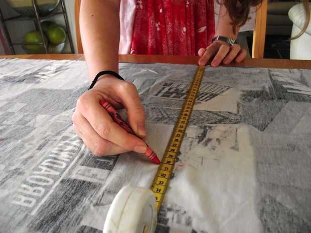 Mide 30cm a lo largo de la longitud de la tela y corte.