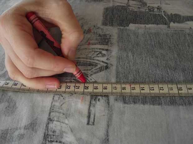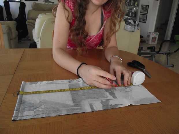 En la franja de 20cm que solo corté, me mide 34 cm largo, cortar y coser.
