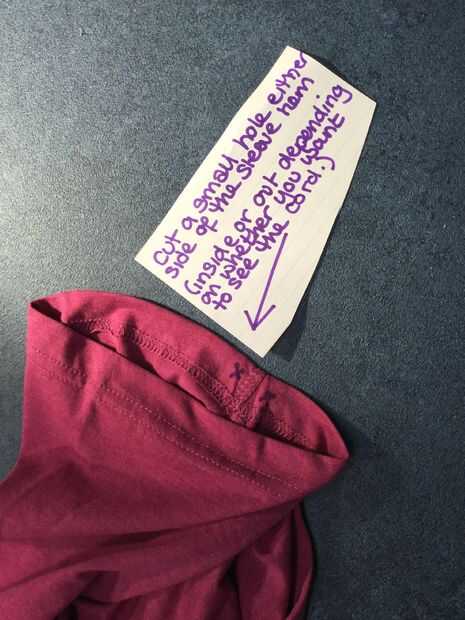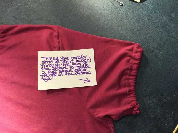 Para crear un manga más girly, corte dos agujeros pequeños en el interior del dobladillo de sus mangas, ambos lados de la costura. Corte una longitud de costura o simplemente tela de camiseta y usando un alfiler, hilo de rosca el cable a través del dobladillo. Asegúrese de que puede encajar su brazo cómodamente a través de la manga, luego un nudo doble y recorte a la longitud deseada.